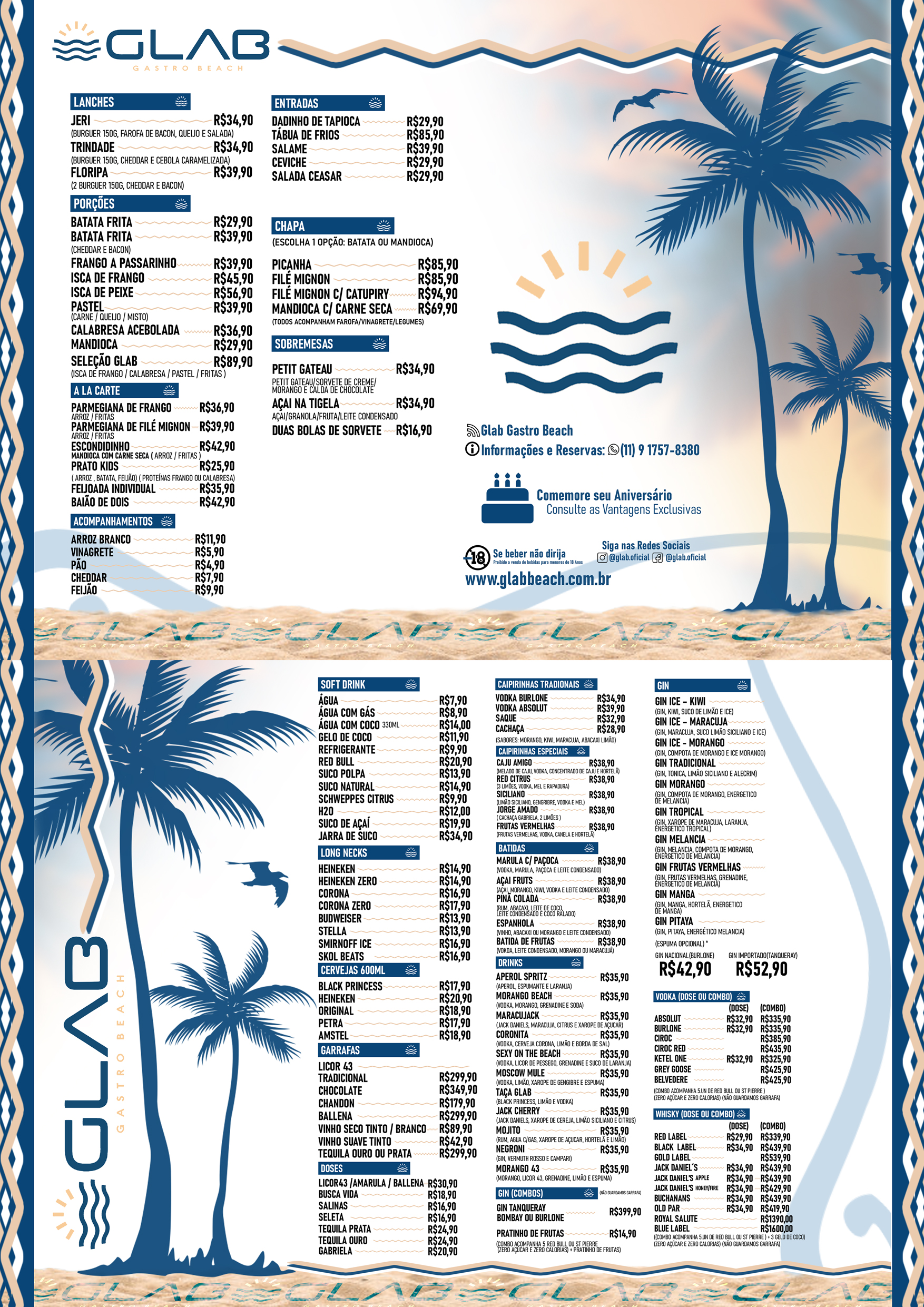 Todos os dirietos reservados Glab Gastro Beach 2023 | Desenvolvido por Alerson Araujo